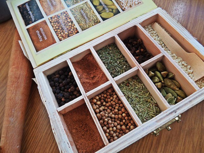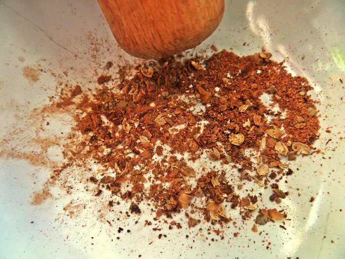 Насыпаем специи в ступку, какие нравятся.