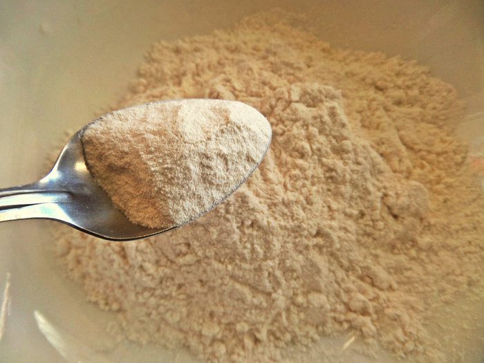 В просеянную муку всыпаем разрыхлитель.