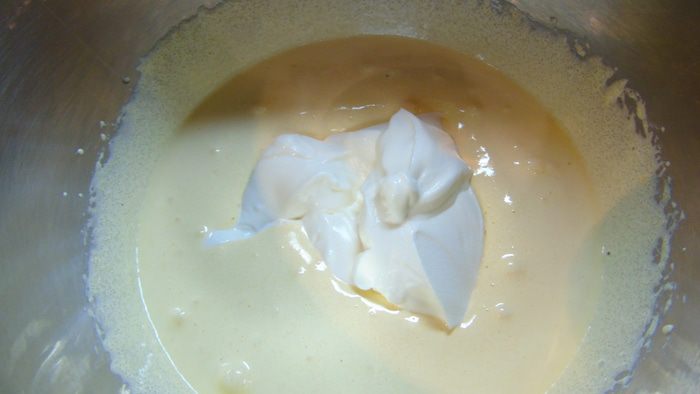 Вводим белки в тесто аккуратно, в несколько приемов.