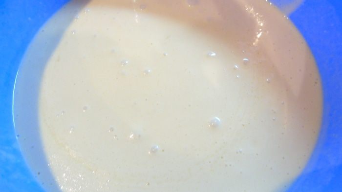 Добавляем 1 стакан муки, закрываем пленкой и ставим в теплое место на 30-40 минут, чтоб опара подошла.