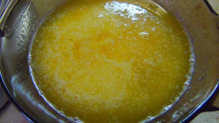 А этим временем растапливаем сливочное масло и маргарин, туда же добавляем растительное масло.