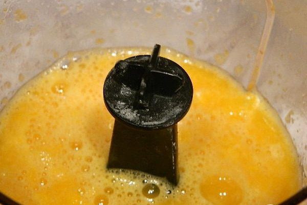 В блендере пробить очищенные мандарины, 100 г сахара и 2 ст. л. крахмала. Хорошо пробить. Процедить через ситечко от пленочек.
