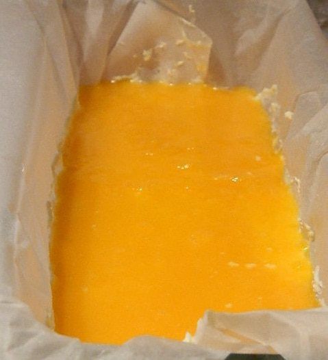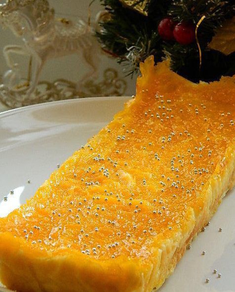 Аккуратно выливаем сверху мандариновую массу. Выпекаем в предварительно разогретой духовке 50 минут при 180°С. Остудить и удалить бумагу.