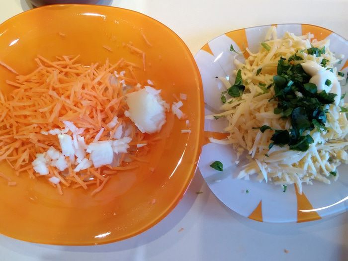 Отрезать 4 пласта толщиной около 1,5 см. Каждый пласт разрезать вдоль не до конца, чтобы получился карман. На фото я постаралась показать, как это должно выглядеть.