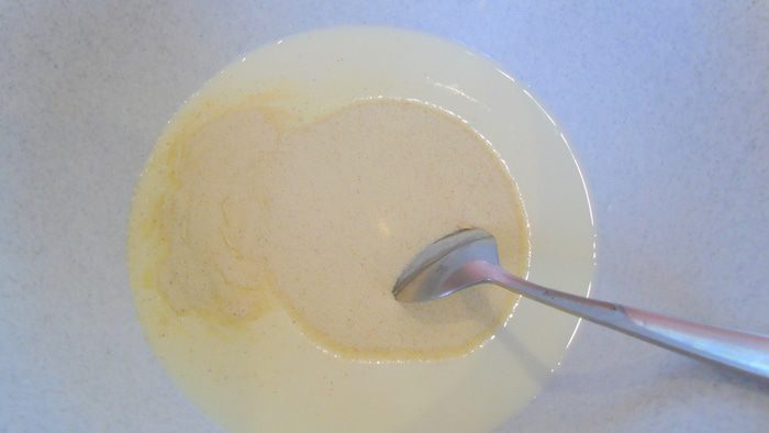 Манку всыпьте в кефир, хорошо размешайте и оставьте набухать на 30 минут.