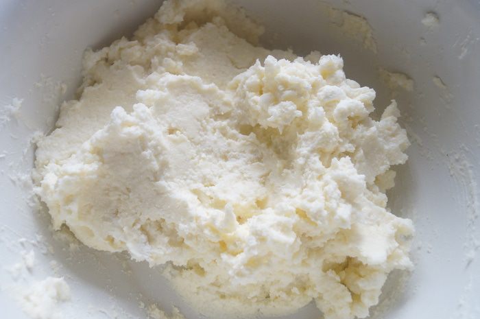 Размягченное сливочное масло растереть с сахаром. Добавить творог и соединить в одну массу.