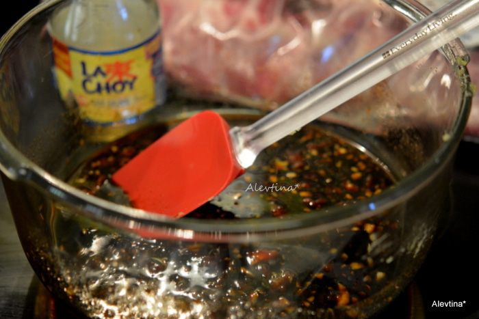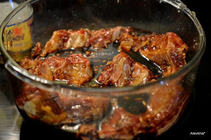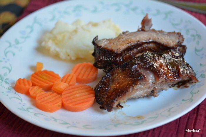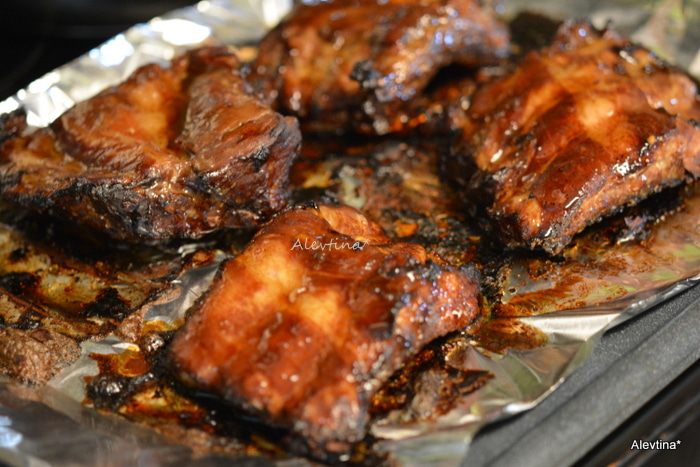 Готовим на гриле или в духовке. В холодный сезон я выбираю духовку. Разогреть на 180 гр. Выложить ребра на фольгу. Чтобы не пригорели сверху, тоже прикрываем фольгой и запекаем примерно 2,5-3 часа.