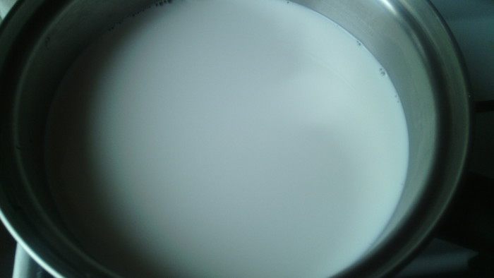 В сотейник наливаем молоко, ставим на плиту и ждем, когда молоко закипит.