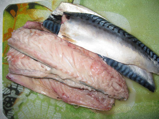 Рыбу помыть, удалить внутренности. Разрезать наполовину и убрать кости. Если у Вас филе, то легче.