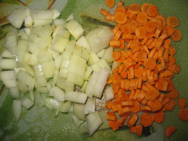 Морковь и лук порезать кубиками.