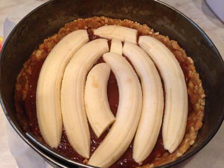 На дно выложить сгущенку.