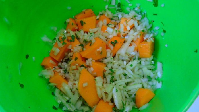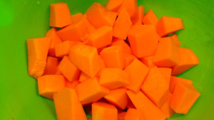 Тыкву очистить и нарезать кубиками.