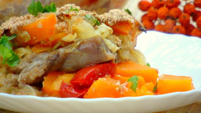 Очень красочное, ароматное и вкусное блюдо! Нежная рыбка между слоями овощей отлично подойдет как для семейного ужина, так и для угощения гостей. Тыква пропитаная ароматом овощей и рыбки очень вкусна, ел даже мой муж, а это поверьте мне показатель.