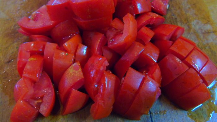 Помидоры нарежьте кубиками.