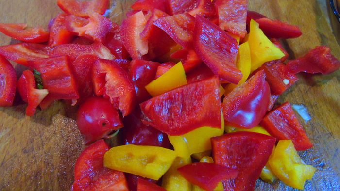 Перец очистите от семян и нарежьте кусочками.