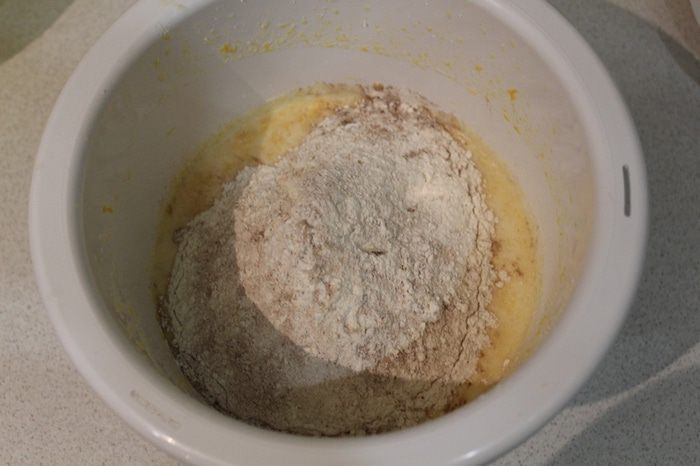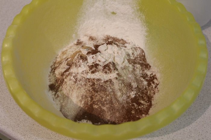 Смешать муку и все сухие ингредиенты.