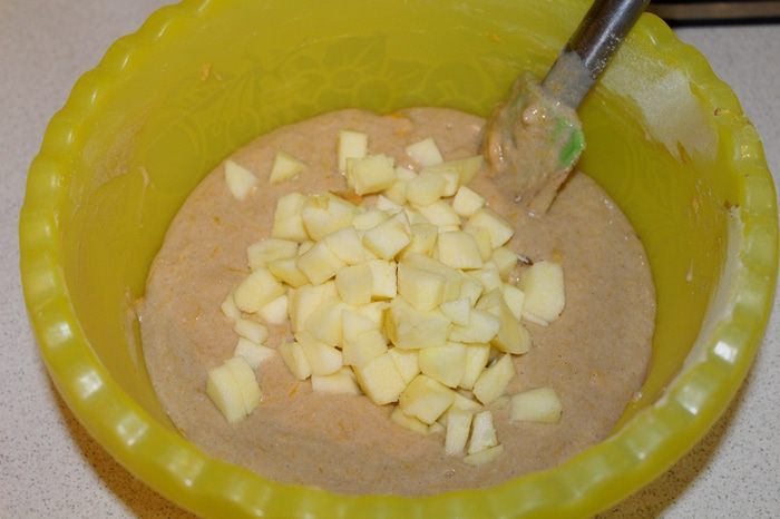 Яблоки почистить и также добавить в тесто.