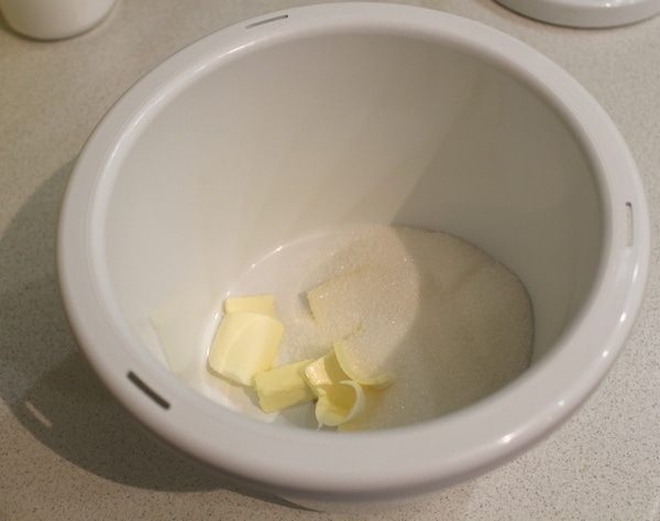 Взбить масло с сахаром.