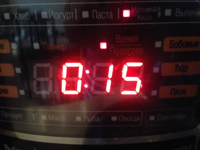 Устанавливаем программу "молочная каша" и ставим время 10-15 минут (я установила 15, мне больше нравится густая каша).