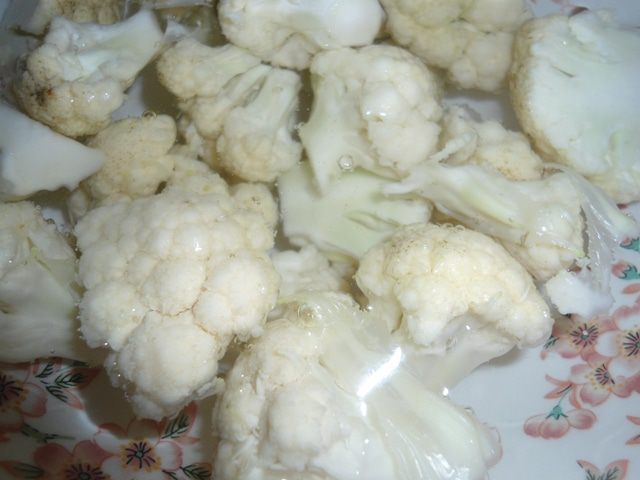 Готовим тапенад: цветную капусту разобрать на соцветия и отварить в течении 10 минут в подсоленной воде. В микроволновке заняло 7 минут. Остудить. Чеснок почистить.