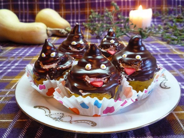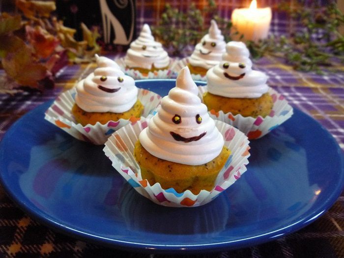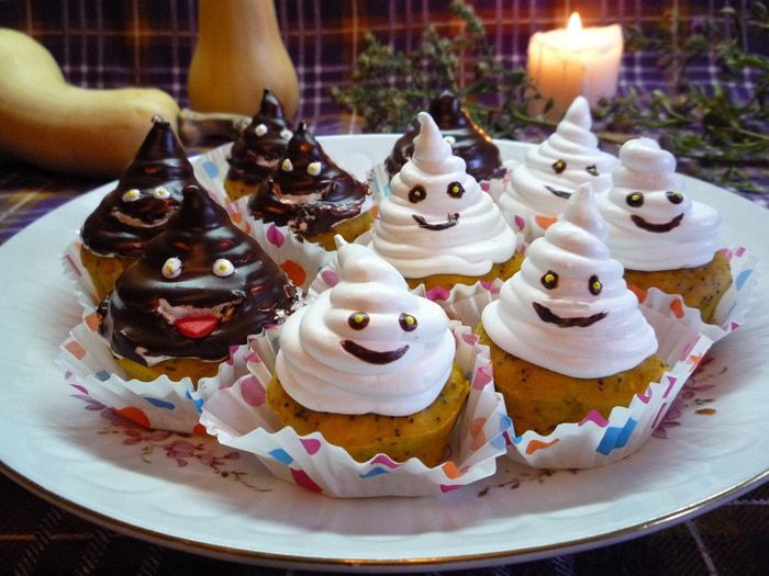 Тыквенно-маковые кексы с воздушным кремом "Веселые привидения"