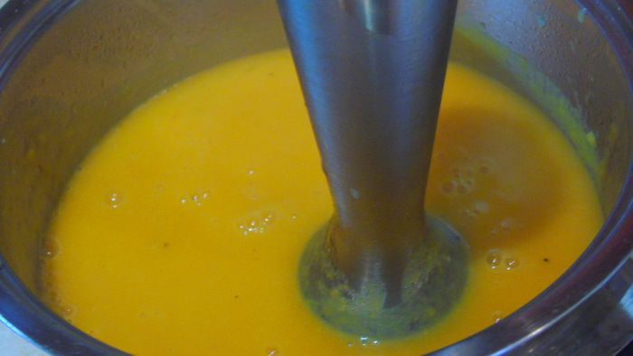Суп снимаем с огня, пробиваем блендером, возвращаем на огонь на 2-3 минуты.