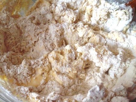 Отдельно смешать теплый кефир с сахаром, солью, творогом и яйцами.