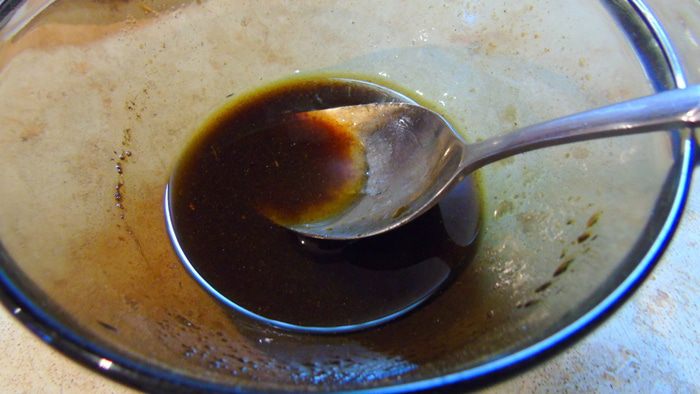 Для заправки смешайте мед, бальзамик, оливковое масло.
