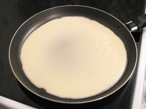 Разогреваем сковородку, добавляем растительное масло и с помощью половника, формируем блин на сковородке. Он часто бывает комом, но пусть это Вас не тревожит, следующий будет лучше :) Таким образом мы испекли блины :)