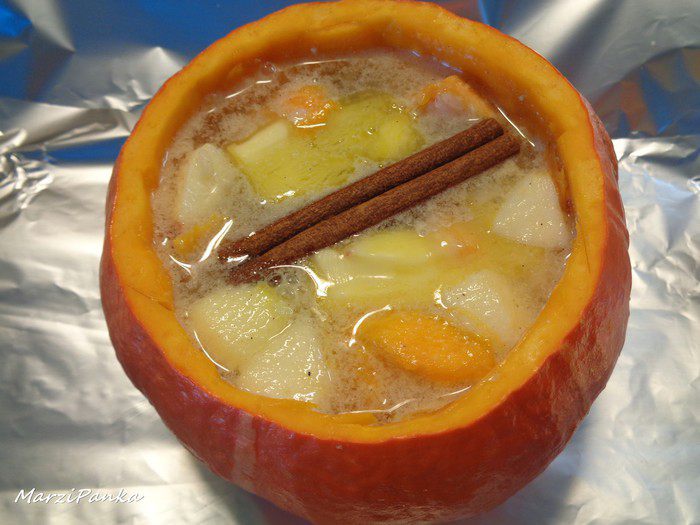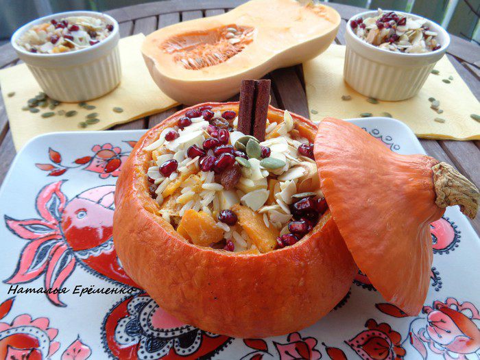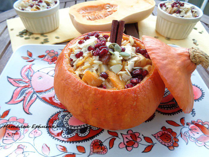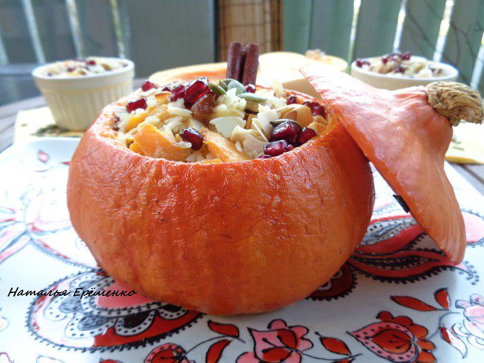 Маленькие кокотницы приготовились за 45 минут, а сама тыква приготовилась за 1,5 часа.