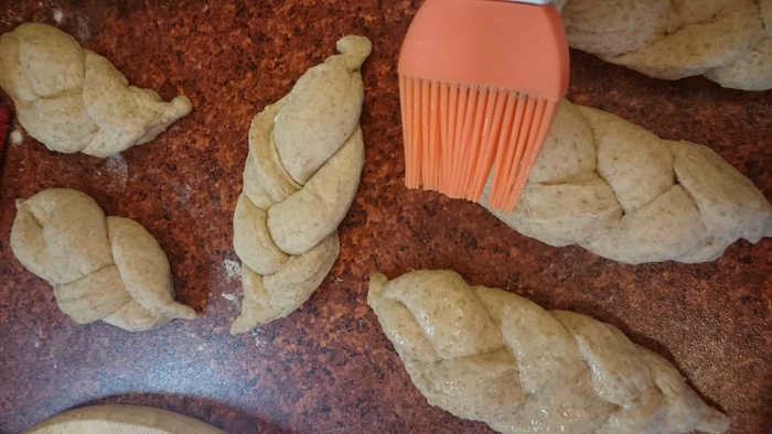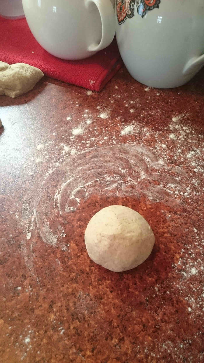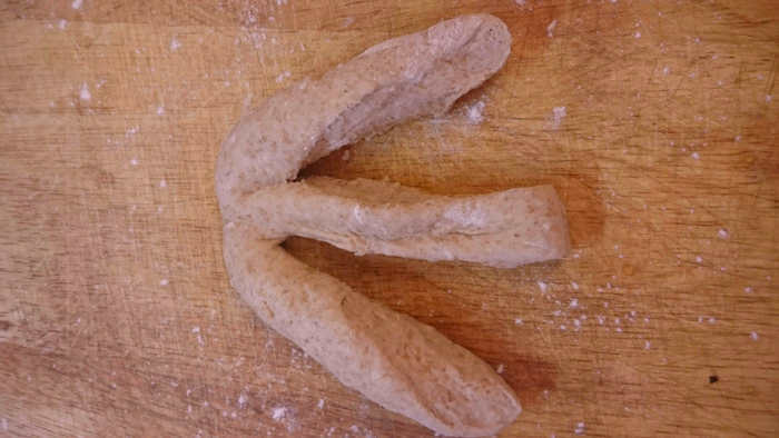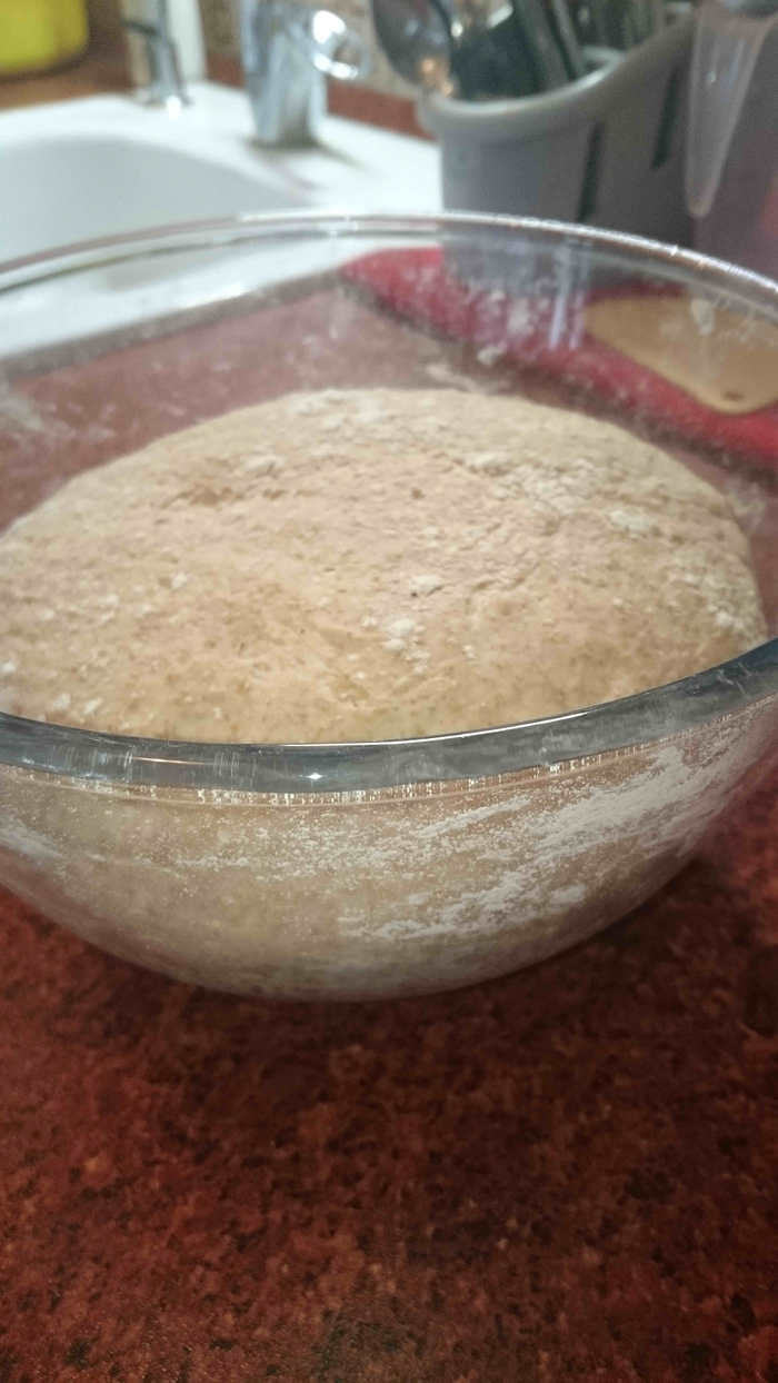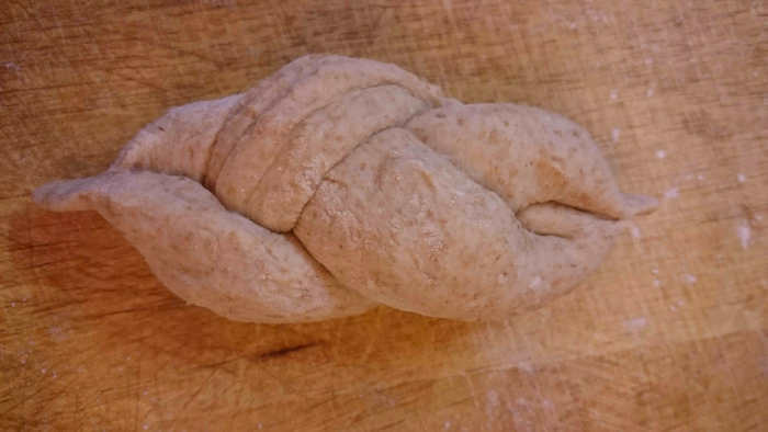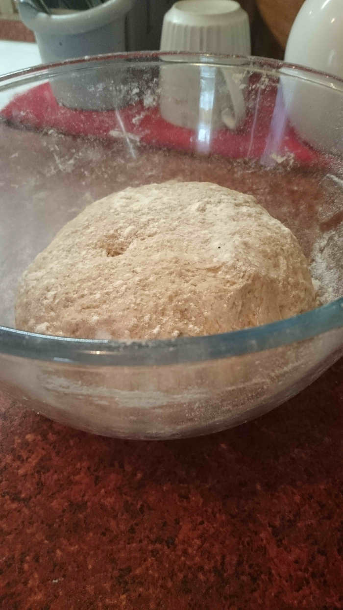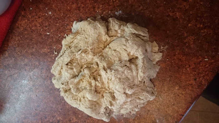 С технологией ручного замеса теста "от Бертине", наверное, знакомы многие. В этом же случае Вы не будете с самого начала иметь липкую субстанцию, которую невозможно оторвать ни от стола, ни от рук :) Цельнозерновая мука утяжелит тесто.