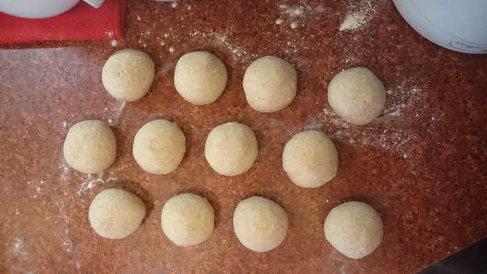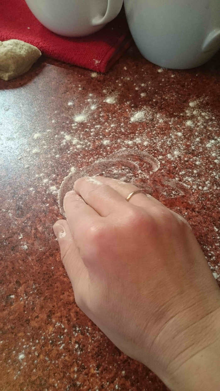 Итак, дрожжи растереть с мукой, добавить соль и воду. Вот, что получилось после предварительного смешивания.