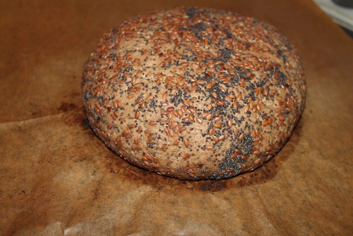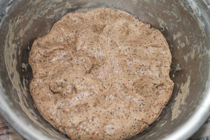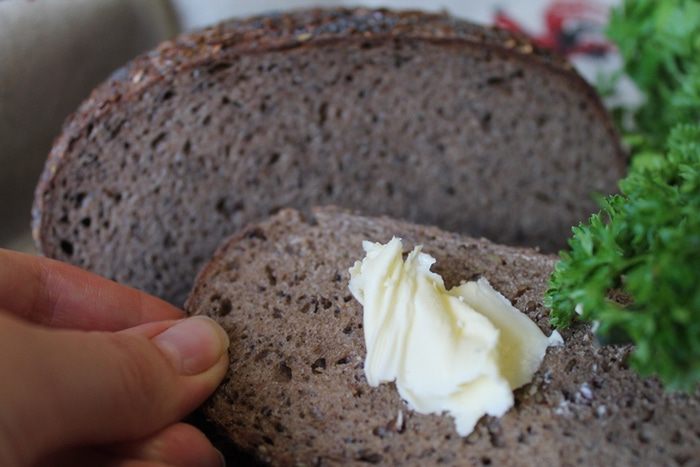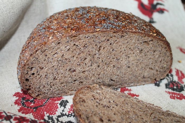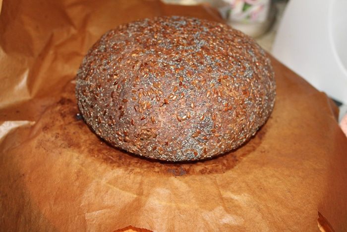 Такой хлеб нельзя сразу есть. Он должен отлежаться, чтобы все ароматы хлебные раскрылись. После выпечки хлеб достать из духовки , завернуть в чистое полотенце (для этих целей у меня отдельные полотенца, которые я не стираю порошком) и оставить часов на 10-15. Хлеб за это время не зачерствеет, не переживайте. Я заметила, что заквасочный хлеб долго не черствеет и не покрывается плесенью.