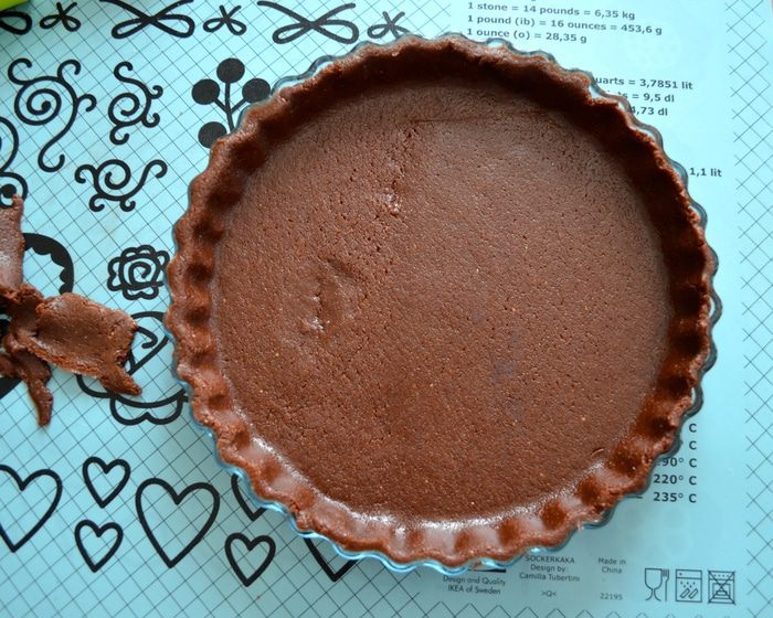 Мне захотело придать бортику пирога рельеф, и так как при наличии бумаги этого сложно добиться, то я просто с помощью скалки выложила тесто в форму для выпечки. Сформируйте бортик и удалите излишки теста по краям. (повторюсь, что с тестом очень приятно работать!)