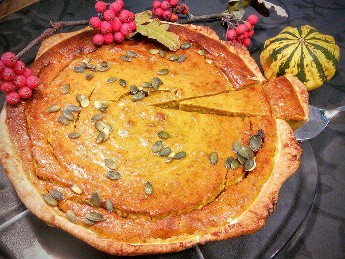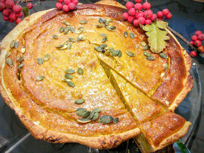 Тыкву помыть, очистить и отварить в течении 20 мин до мягкости. Воду слить, дать выход пару. Остывшую тыкву смешать со специями, сахаром, ванильным сахаром (у меня ванильная настойка, собственного производства). Взбить массу погружным блендером. Духовку разогреть до 210 градусов.
