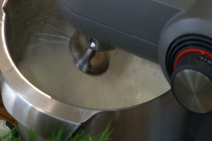 Когда масса станет пышной и воздушной, не прекращая взбивать, по одной столовой ложке всыпать мелкий сахар и вымешивать все еще 10–15 минут.