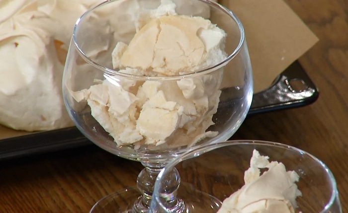 Готовые меренги поломать крупными кусочками.