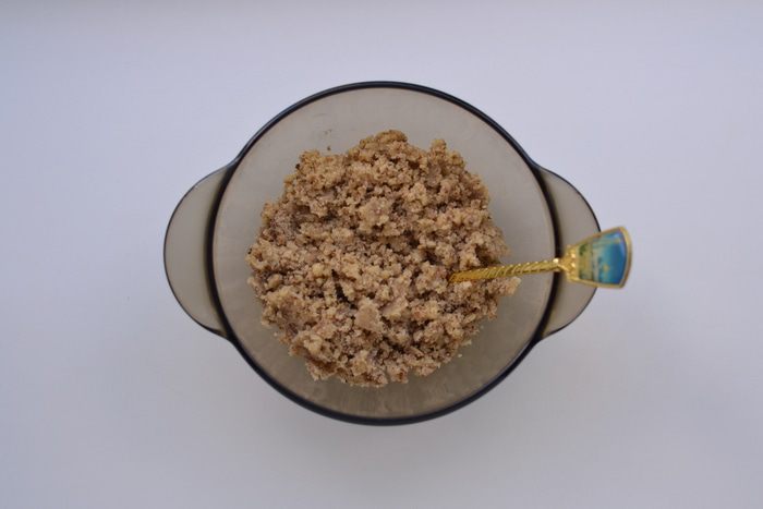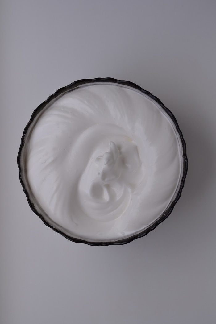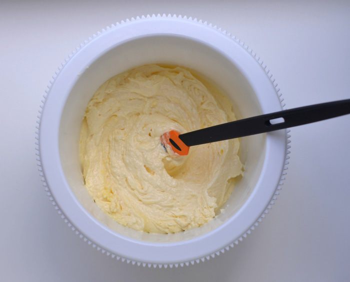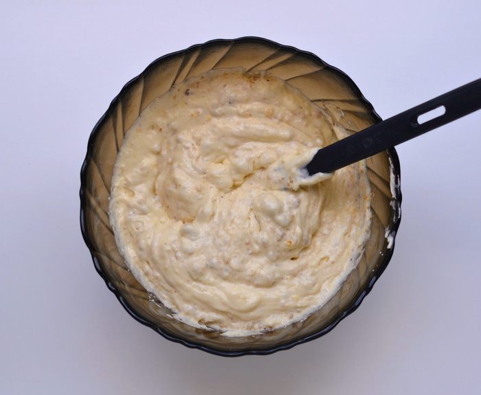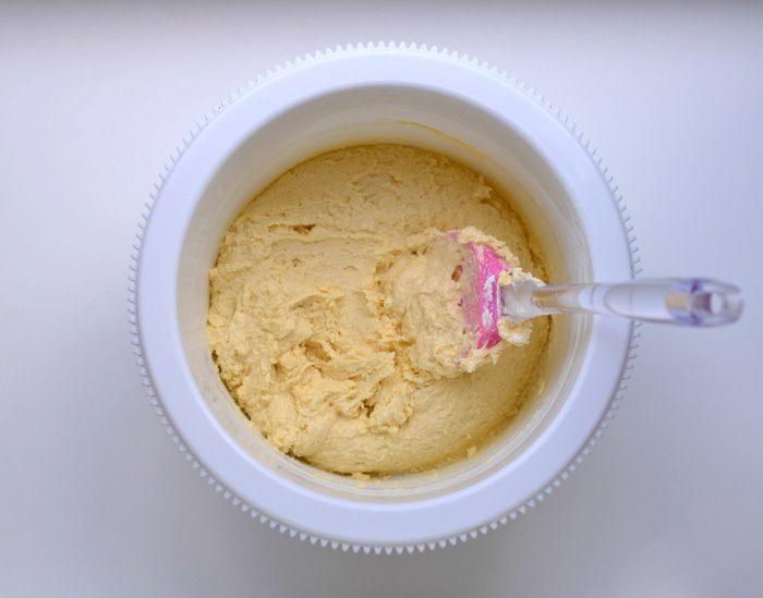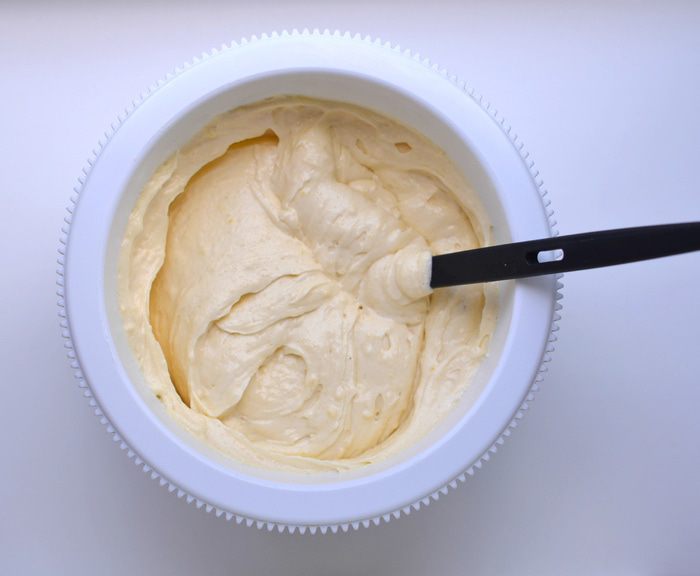 В белки добавить щепотку соли и начать взбивать на малой скорости миксера, как только масса начнет густеть, добавлять понемногу 100 г сахара и взбивать, увеличивая скорость. Как только масса станет очень густой, добавить уксус (яблочный, фруктовый). Взбивать до плотных пиков.