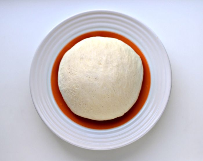 Дрожжи перетереть с солью, добавить теплое молоко и сахар, размешать. Масло сливочное распустить (в микроволновке), добавить к основной массе. Смешать. Влить смесь в хлебопечку. Добавить просеянную муку и включить режим "Тесто". Если делаете руками, то выполнять все в той же последовательности. Муку добавлять в несколько приемов. Сначала мешаем ложкой, потом руками. Тесто замешивается быстро — становится очень эластичным, мягким, но не тяжелым. Вынуть тесто из чаши хлебопечки. Переложить в целлофановый пакет и убрать в холодильник на 4 часа.