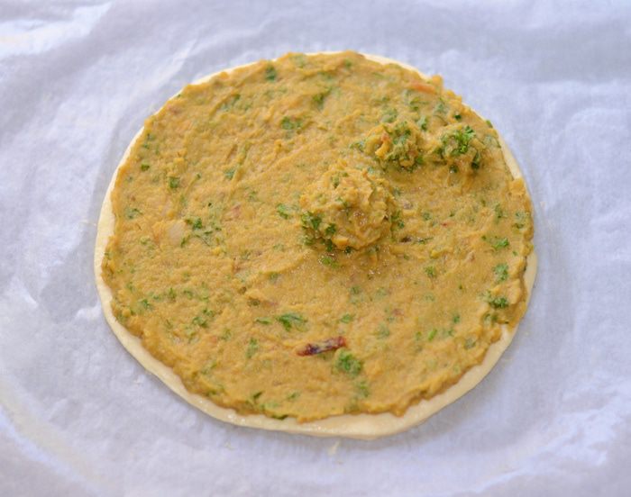 Пирог с нутом, зеленым горохом и зеленью. Готовим тесто.