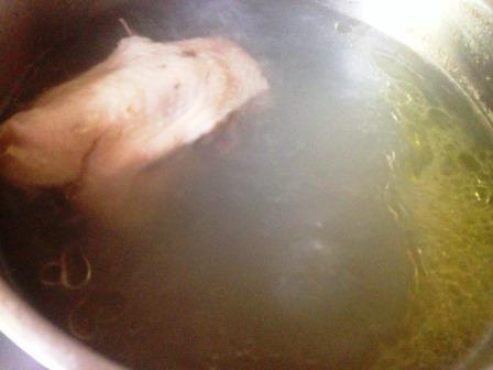 В холодную воду кладем мясо. Сварить до готовности. Снять пенку. Посолить.