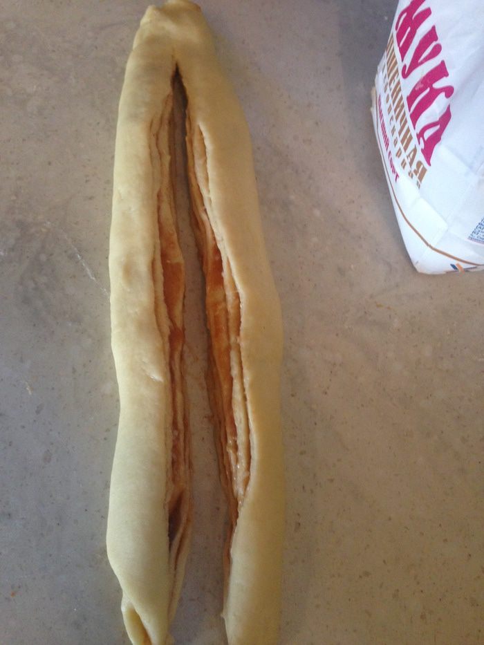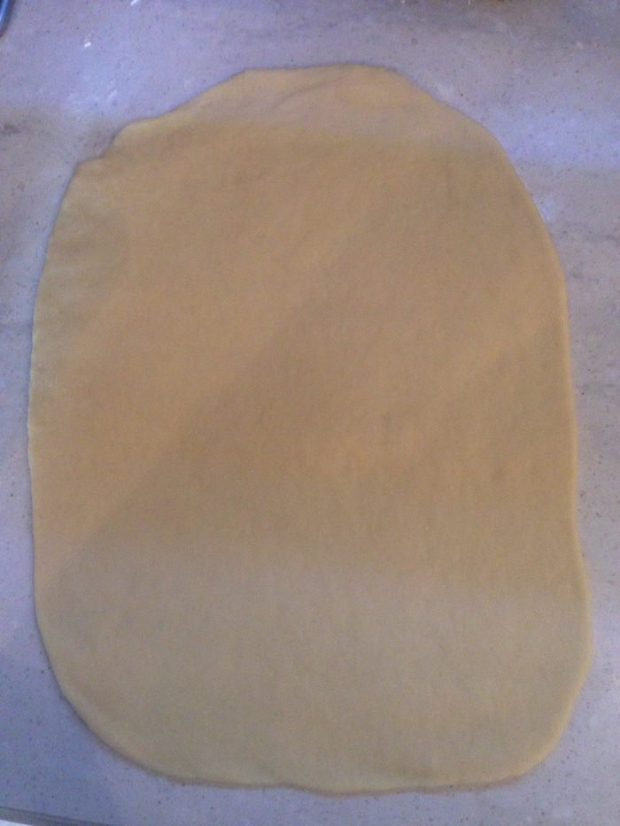 Каждую часть раскатываем как на фото (приблизительно 20-25 х30 см). Пласт не должен быть очень тонким!