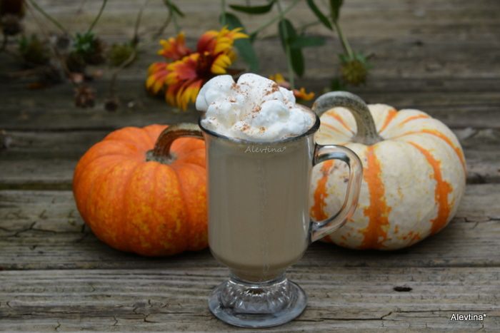 Разлить по кружкам. Добавить шапочку взбитых сливок. Посыпать тыквенной специей. Наслаждаемся. Старшим школьникам и нам нравится такой вкусный напиток.