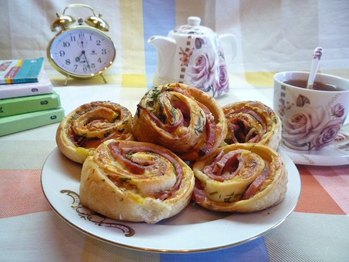 На занятия школьники всегда торопятся, и полноценно их накормить бывает очень сложно. Налейте ребенку чай и поставьте на стол симпатичные "улитки", и будьте уверены, ваше чадо в близжайшие пару часов о еде даже не вспомнит. Обычно по истечению этого времени детишек уже кормят в школе.