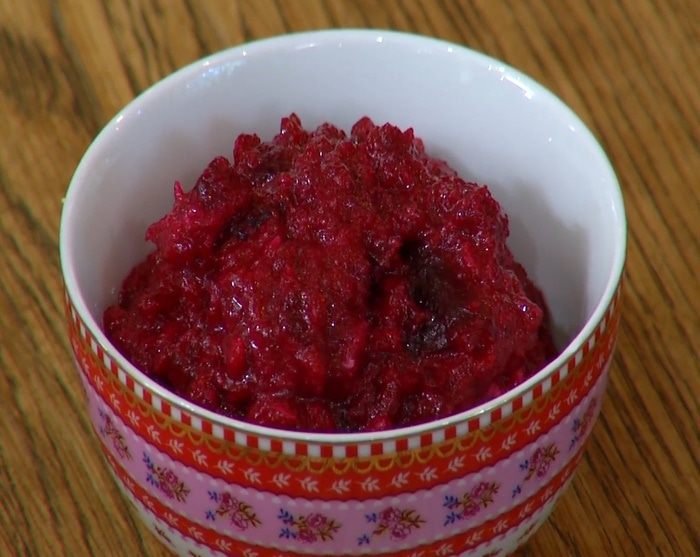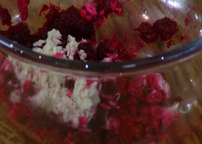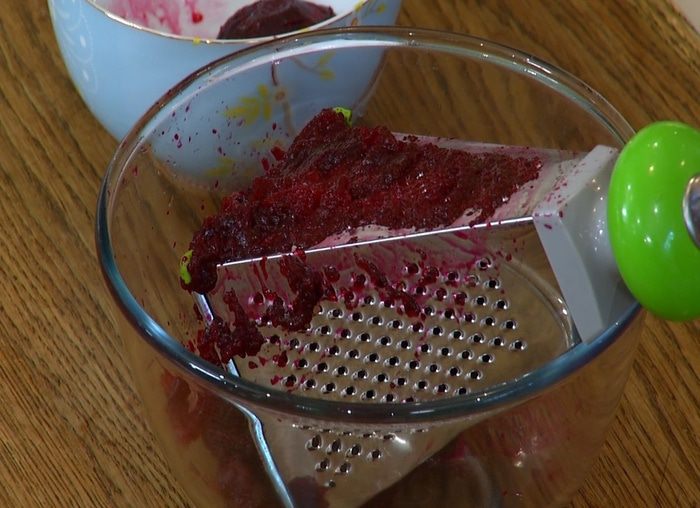 Свеклу запечь в разогретой духовке до готовности, затем почистить и натереть на мелкой терке.