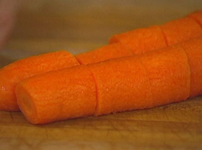 Морковь почистить и нарезать крупными кусками.