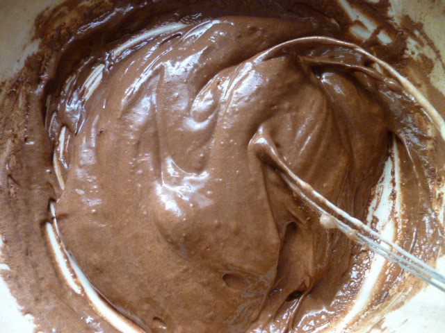 От теста взять 1/4 часть теста и добавить в нее просеянное какао, тщательно перемешать.