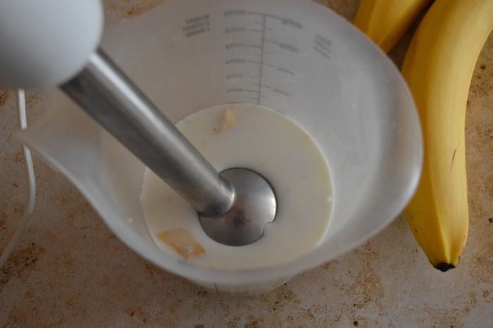 В чаше блендера смешать все ингредиенты с помощью блендера.