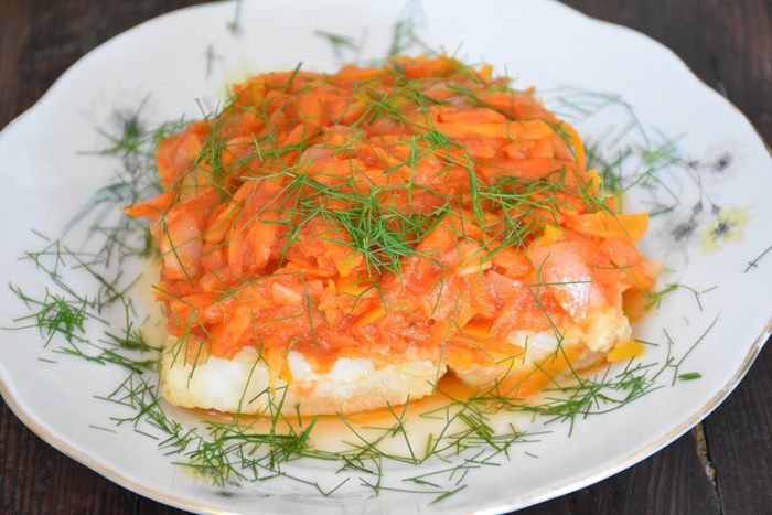 Кусочки рыбного филе разложить по тарелкам, сверху выложить маринад. Отправить в холодильник на 3-4 часа.