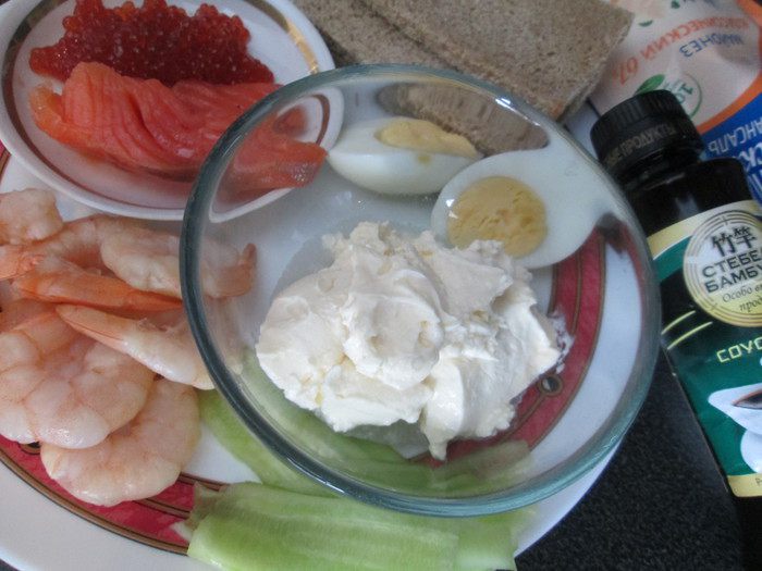 Приготовим соус: смешаем майонез, сметану, соевый соус и красный перец. Уберем в холодильник на полчаса.